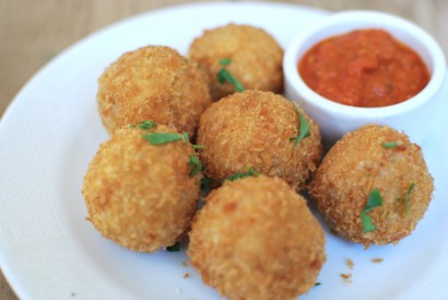 Crispy arancini stuffed with mozzarella cheese and breaded with Panko. A perfect appetizer!