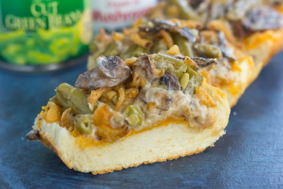 This Green Bean Casserole Cheesy Bread puts a creative spin on the classic holiday side dish!