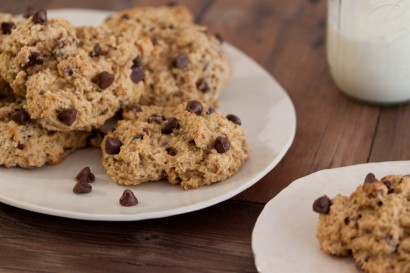 Form large mounds out of the dough. The size can vary depending on whether or not you want to stretch the recipe to make more. (I generally make them bigger than a golf ball, but smaller than a tennis ball.) Place the mounds of dough onto a parchment-lined baking sheet and refrigerate for 30-45 minutes before baking.