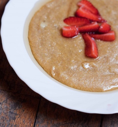 Pour into a bowl or plate, garnish with fresh or dried fruit, nuts, maple syrup, etc. and serve.