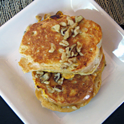The perfect breakfast for fall. Rich and creamy pumpkin filling stuffed between French bread and topped with nuts.