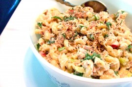 This roasted red pepper pesto pasta salad is bursting with Mediterranean flavors and features a delicious vegan spin on pesto!