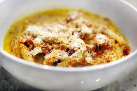 This easy one-pan recipe includes plump seared shrimp in a rich and melty Parmesan sauce topped with fresh basil.