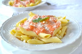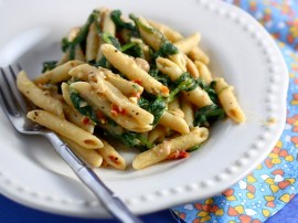This roasted red pepper pesto pasta salad is bursting with Mediterranean flavors and features a delicious vegan spin on pesto!