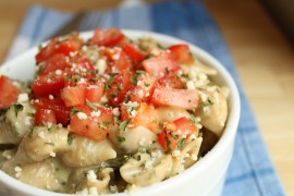 This roasted red pepper pesto pasta salad is bursting with Mediterranean flavors and features a delicious vegan spin on pesto!