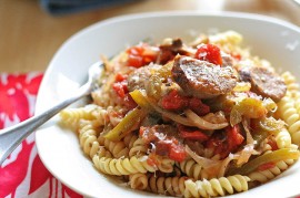 These are such simple and amazing loaded French bread pizzas topped with sausage, roasted red peppers, onion and lots of cheese!