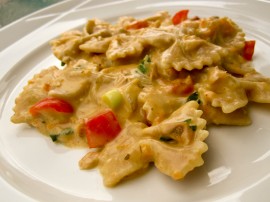 This roasted red pepper pesto pasta salad is bursting with Mediterranean flavors and features a delicious vegan spin on pesto!