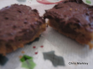 Chocolate and peanut butter together in an easy bar cookie. These will disappear quick!