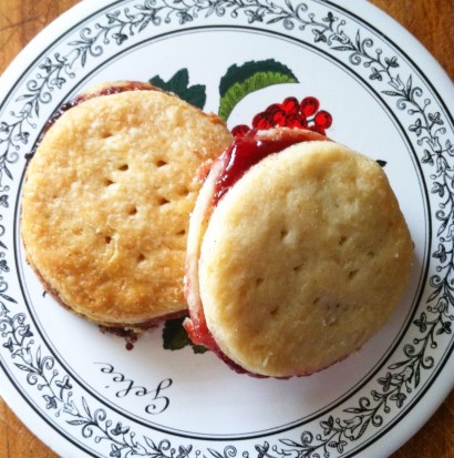 Place about 1-2 teaspoons of preserves into the middle of one side of the cookie.