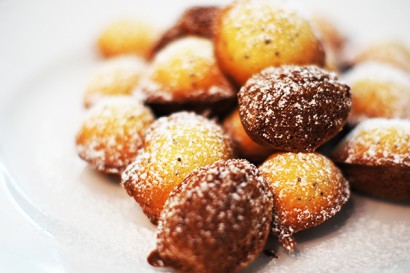 In a separate bowl, whisk together eggs, white and brown sugar, honey, lemon zest, water, and poppy seeds until a smooth mixture is produced. Whisk dry ingredients in until just incorporated, and then add melted butter, whisking until mixture is smooth and sticky. Transfer to a plastic bag or a pastry bag (that is, if you’re planning to pipe the batter. Otherwise just cover your bowl with cling film), and chill in refrigerator for at least 1 hour, ideally overnight.