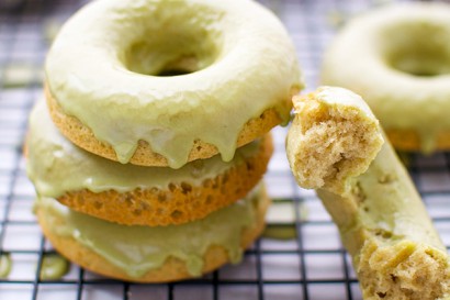Mix powdered sugar, water and matcha powder together. Consistency needs to be thick; you can either add more powdered sugar or water to adjust it. Dip donuts into glaze, then line on a cooling rack, letting the excess drip onto the baking sheet.