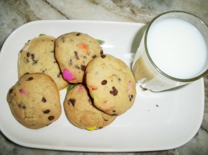 I waited so long to post this recipe. I am telling you, this is one of the best cookies I have ever tasted. I couldn’t stop eating this till I finish the entire jar. In our place there are no M&Ms available so instead I used Cadbury’s Gems which turned out perfect. Next time when I make this, I will add some more gems on top of the cookie so that it will look pretty. This cookie came out so soft and it was so good.