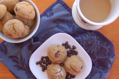 Whisk together flour, baking soda, cinnamon, salt, ginger, and allspice in a large bowl. Then whisk in brown sugar. Stir in melted butter, molasses, almond milk, and egg. Gently fold in the chocolate-covered pomegranate seeds.