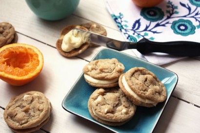 An orange buttercream sandwiched between 2 vanilla chip cookies. So refreshing!