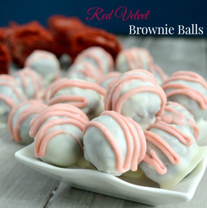 Perfect for Valentine’s Day gifts, these Red Velvet Brownie Balls are a fun twist on the classically popular cake balls. Fudgy red velvet brownies are rolled into bite sized balls and dipped in white chocolate and then drizzled with even more white chocolate.
