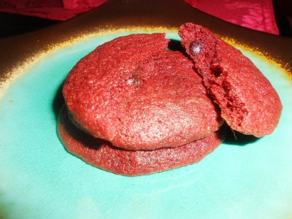 These cookies are moist and chewy, almost caky but not quite, and chocolaty. Just amazing!