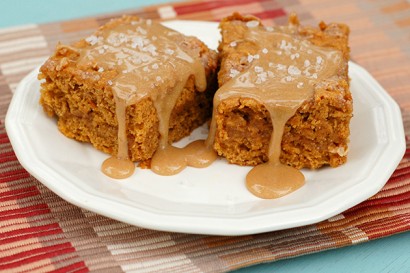 Pumpkin bars stuffed with an entire layer of salted caramel!