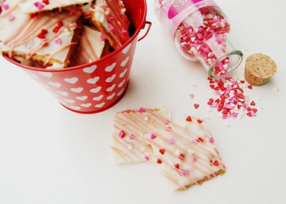 Notes: You can choose to make these like a bark and break them apart into odd pieces or you can keep them as full squares. If your choose to keep them as squares, gently separate your crackers from one another just after you spread the white chocolate over the top (and sprinkle with a decoration if you are choosing to do so). Use a couple toothpicks to help you get the job done. Then once the chocolate hardens, place your crackers/cookies on parchment or a cooling rack and drizzle each separately.