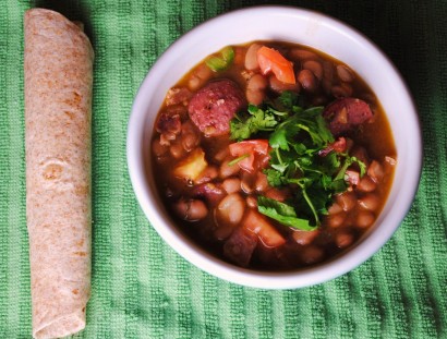 Continue to simmer, for about another 15 minutes. You want the beans so soft that they come apart if you hold one between your fingers, and the broth should have thickened to a soupy consistency. Remove the onion. Taste for seasoning. Use or freeze. Place in the fridge overnight to thaw and warm again.