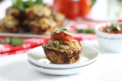 Combine all the muffin ingredients in a large bowl and mix together with hands until ingredients are fully distributed. Roll into balls to fit muffin tin (the mixture will be pretty wet) and drop in.
