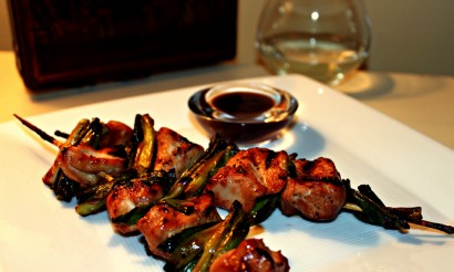 Chicken skewered with green onions and basted in a yummy teriyaki-like sauce. Easy, attractive and delicious!