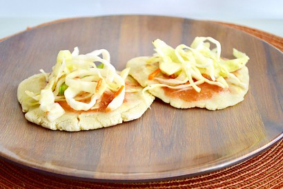 The curtido really needs to sit at least overnight, so prepare that first. Toss the shredded cabbage, carrots, jalapeño, salt, oregano and coriander together well in a large, glass bowl that has a sealable lid. Pour the apple cider vinegar and warm water over it and give it all another thorough toss. Seal the bowl with the lid and let it sit in the refrigerator overnight to meld together.
