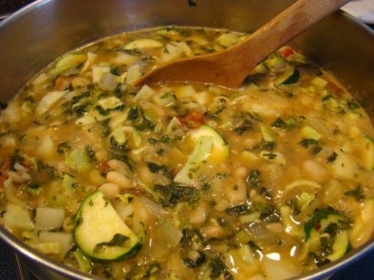 5. This is a thick soup, if you prefer a thinner consistency add a little water. Serve hot with Parmesan cheese sprinkled over the top of each serving.
