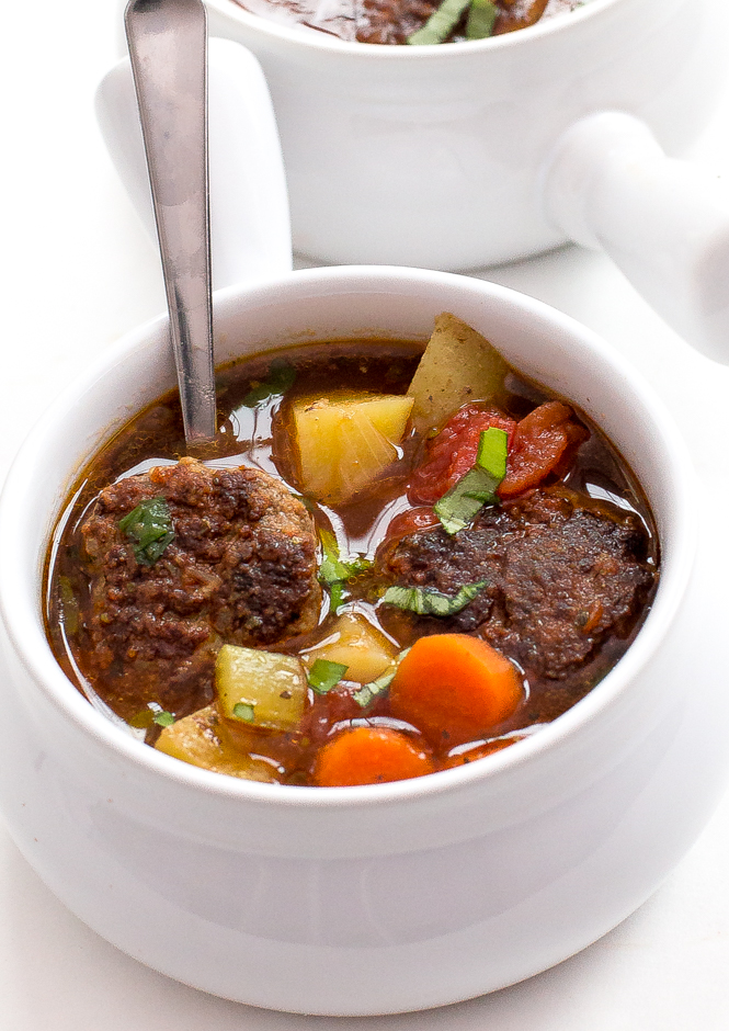 Add meatballs back to the soup and cook for an additional 15 minutes or until the meatballs are cooked all the way through and the potatoes are tender. Season with salt and pepper to taste.